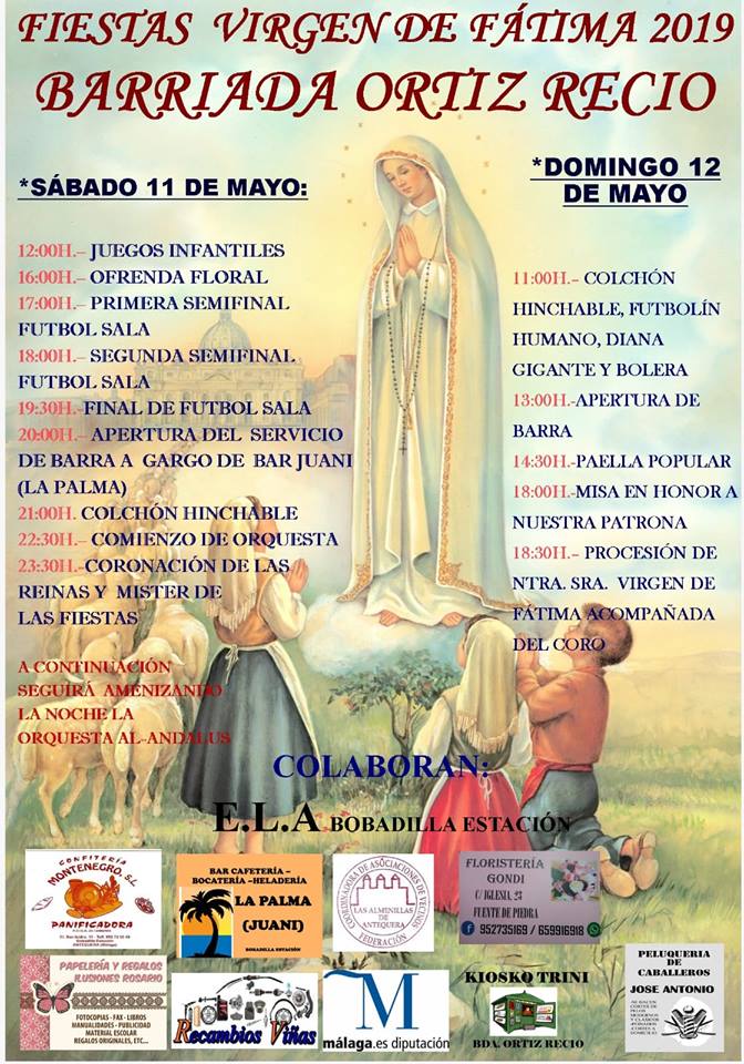 La Barriada Ortiz Recio de Bobadilla Estación celebra este fin de semana sus fiestas patronales en honor a la Virgen de Fátima.