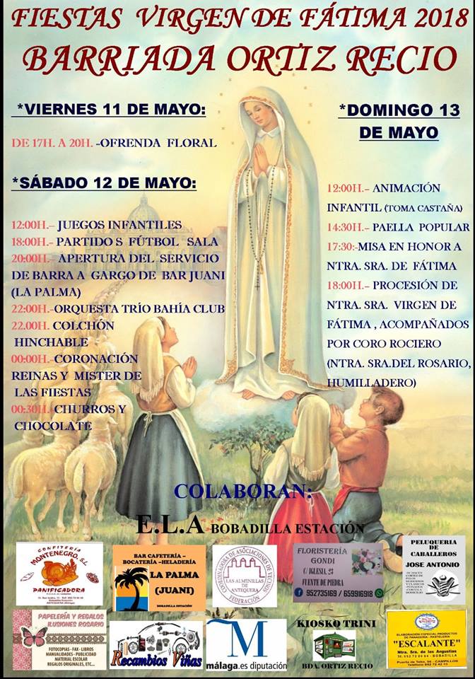 La barriada Ortiz Recio de la Entidad Local Autónoma de Bobadilla Estación celebra las fiestas de la Virgen de Fátima desde el próximo 11 de mayo con la celebración de una ofrenda floral desde las cinco de la tarde hasta las ocho.