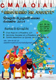 Recordamos que los puntos de recogida de juguetes nuevos son el edificio de Cruz Roja en calle Picadero, el edificio Don Pedro de Rojas y el Centro Deportivo la Quinta.
