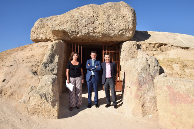 La candidatura de los Dólmenes a Patrimonio Mundial de la UNESCO sigue adelante. Y con motivo de informar de los siguientes pasos a afrontar, el secretario general de la Consejería de Cultura, Eduardo Tamarit, visitó, junto al delegado del Gobierno en Málaga, José Luis Ruiz Espejo, el Conjunto Arqueológico Dólmenes de Antequera ayer.