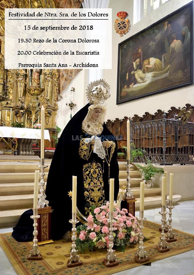 Este sábado 15 de septiembre a las 19.30 horas tendrá lugar rezo de la Corona Dolorosa. A continuación, a las 20.00 horas tendrá lugar celebración de la Eucaristia en el interior de la iglesia parroquial de Santa Ana.