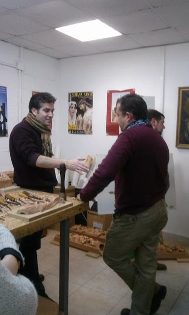 La Cofradía de la Pollinica de Antequera visita el taller de Juan Manuel Pérez Pérez