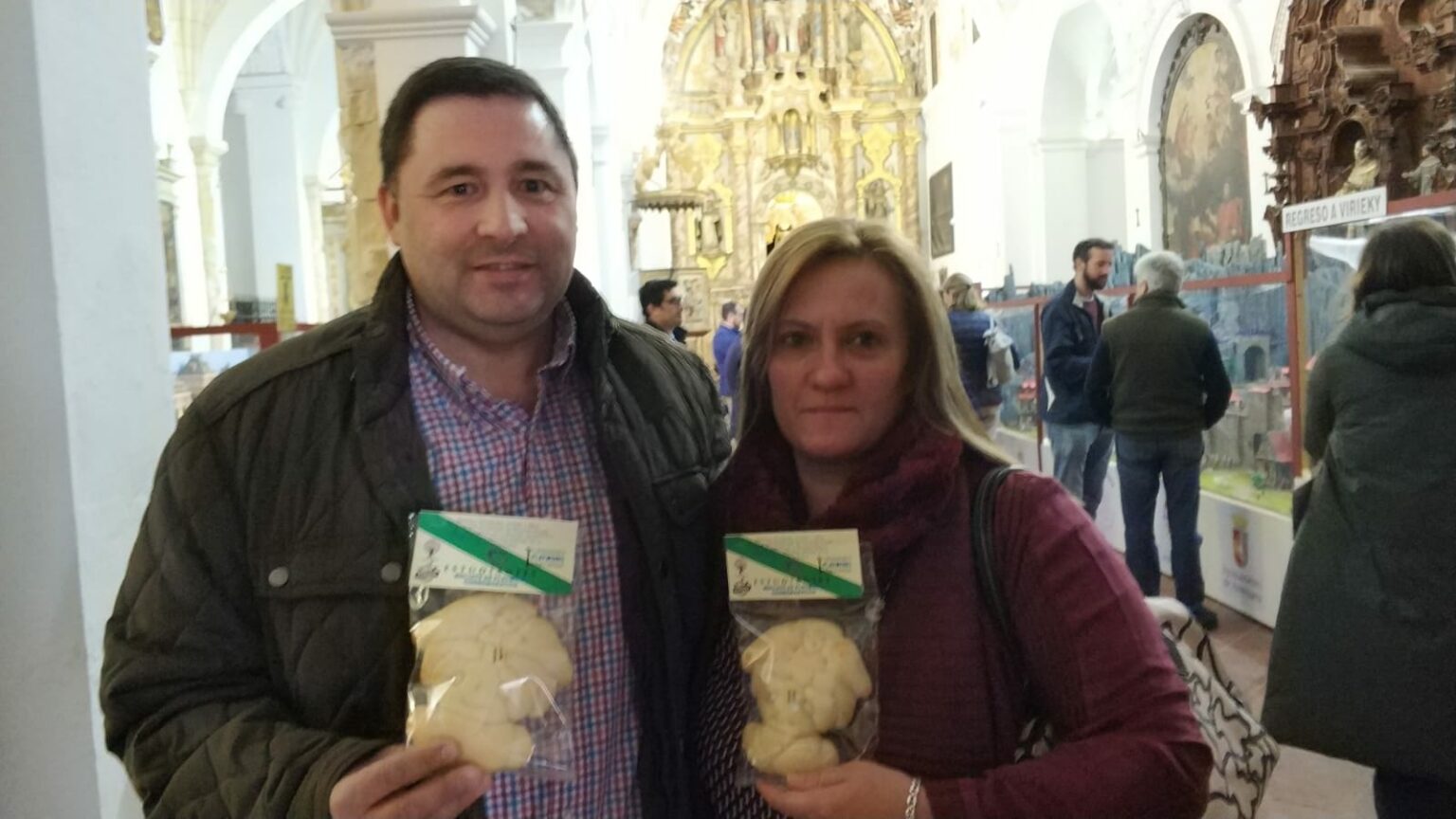 Ramón Gómez, hermano mayor de la Archicofradía de los Estudiantes de Antequera, y Remedios Tortosa, de la empresa Padepan, han presentado esta semana un mollete con forma de playmobil coincidiendo con la celebración del primer concurso nacional de Playmobil de la ciudad de Antequera que tiene lugar del uno de noviembre al siete de enero.
