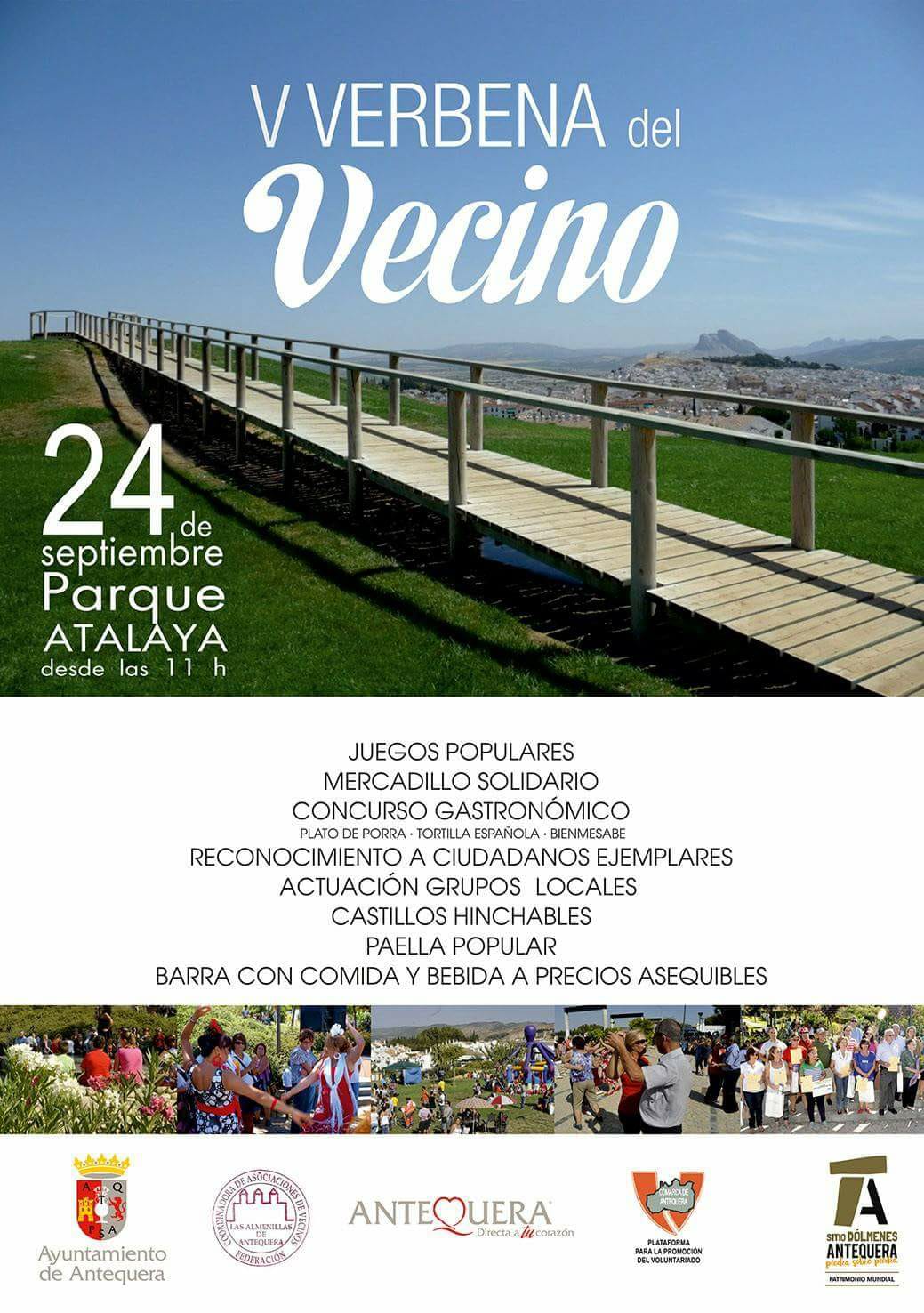 El próximo domingo 24 de septiembre, se celebrará la Verbena del Vecino, cuya celebración tendrá lugar en los jardines del Parque Atalaya Gandia de Antequera.
