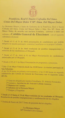 del Mayor Dolor y Nuestra Señora del Mayor Dolor de Antequera, de acuerdo con sus Estatutos, convoca a todos sus cofrades a Cabildo General de Elecciones con el