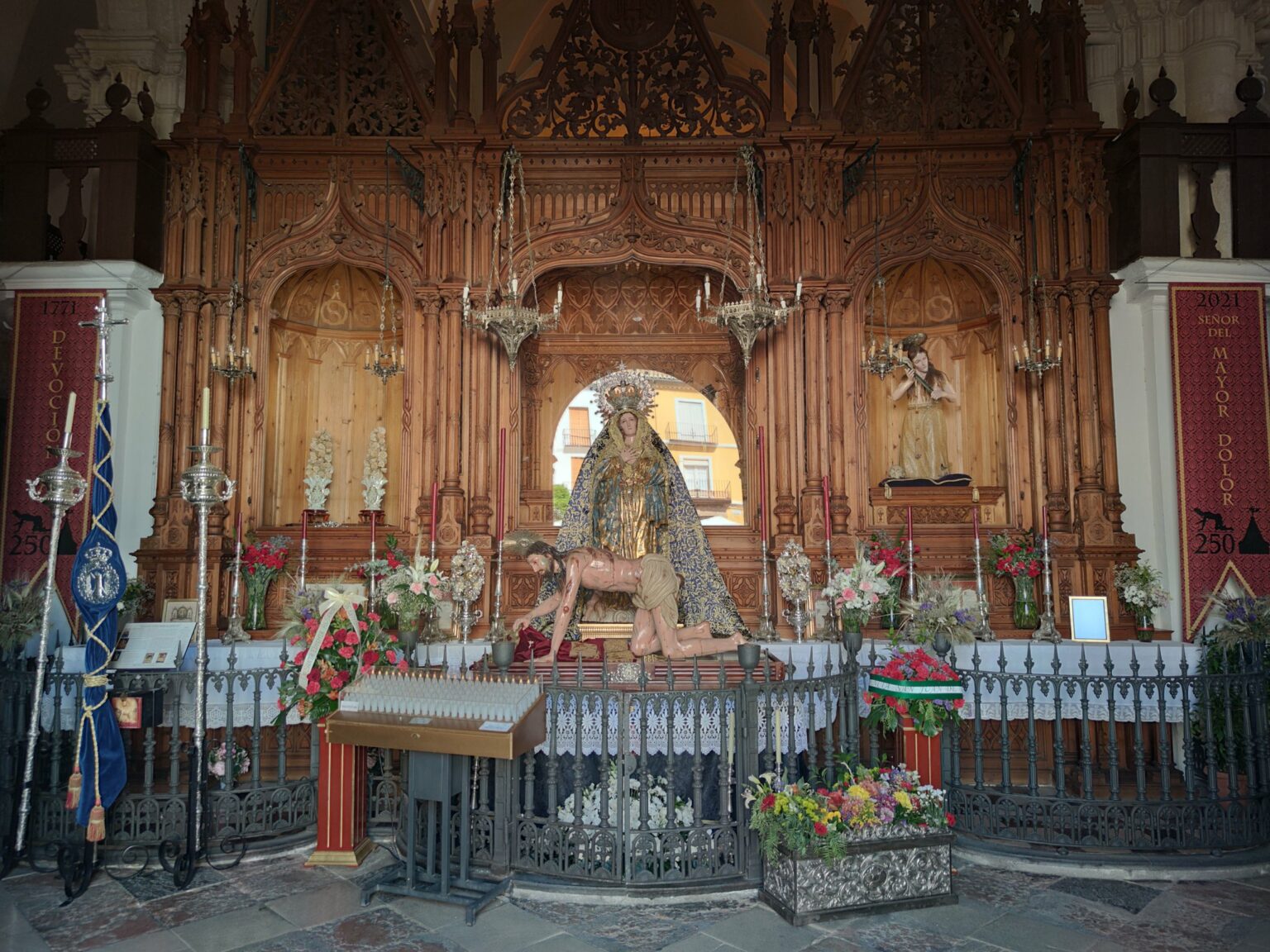 La Cofradía del Mayor Dolor de Antequera realizó una solemne misa pontifical el pasado 12 de junio en la Plaza San Sebastián para celebrar el 250 aniversario de la Bendición y Hechura del Señor del Mayor Dolor.