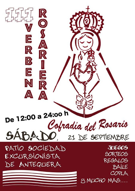 La Hermandad de la Virgen del Rosario de Antequera organiza por tercer año su verbena que tiene una duración de doce horas y se instala en el patio de la Sociedad Excursionista Antequera que tiene su sede en calle Alameda de Andalucia.