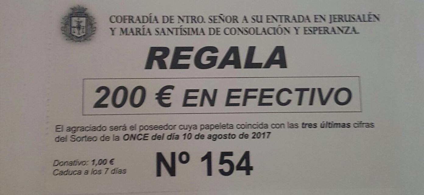 De esta forma, sortean 200 € en efectivo. Si quieres ser el afortunado, sólo tienes que adquirir una de las papeletas que en estos días están vendiendo a tan sólo 1 €.