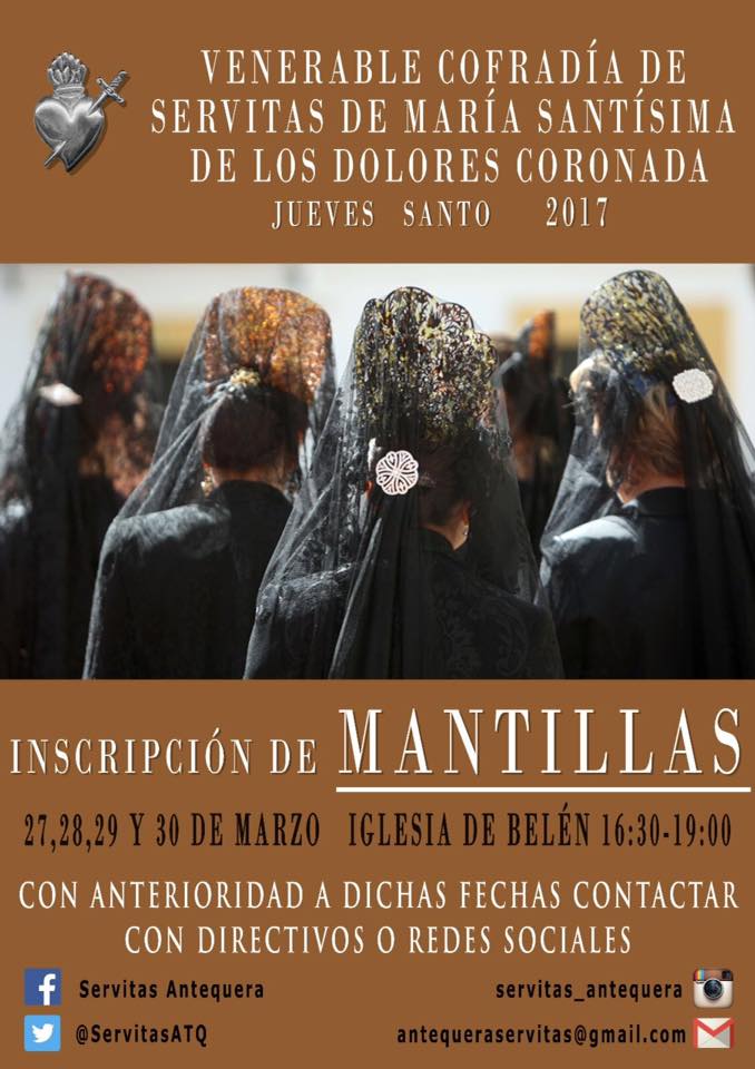 Previamente a esas fechas, también pueden inscribirse a través de los miembros de la Junta Directiva o en las redes sociales facebook, twitter o instagram. Asi como a través de su correo electrónico antequeraservitas@gmail.com