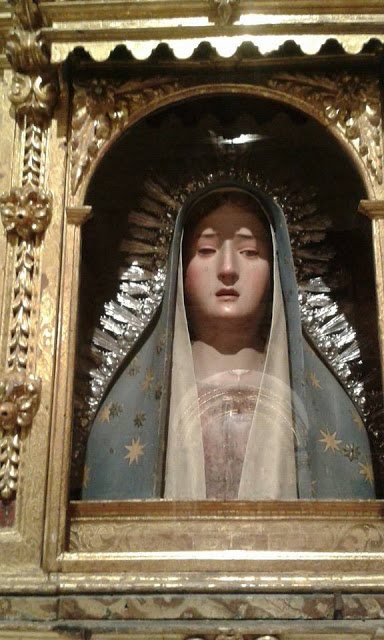 La Esclavitud de Nuestra Señora de Los Remedios, Patrona de Antequera, informa que la antigua talla de La Dolorosa atribuida a la escuela de Pedro de Mena que se encuentra en la Iglesia de Los Remedios, vuelve a lucir su ráfaga después de aproximadamente cincuenta años sin ella.