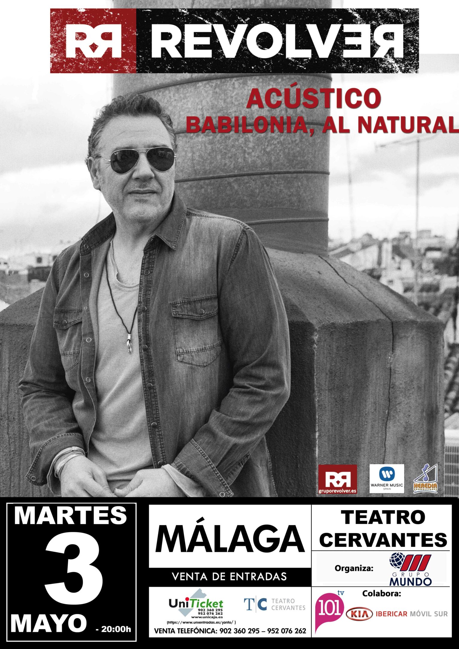 Los fans del grupo Revólver podrán disfrutar en directo de la nueva gira en acústico Babilonia al natural el martes 3 de mayo a partir de las ocho de la tarde en el Teatro Cervantes de Málaga.