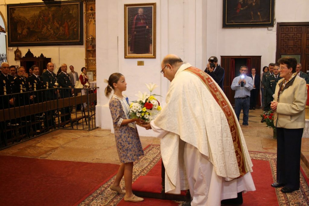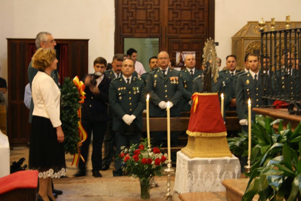 Durante la celebración los guardias civiles rindieron homenaje a su patrona al hacerle varias ofrendas como un ramo de flores, unas medallas de la Virgen del Pilar, pan y vino y un tricornio, símbolo de la seguridad para los ciudadanos, todo ello para darle las gracias y pedirle que le siga protegiendo en su andadura en favor de los ciudadanos españoles.