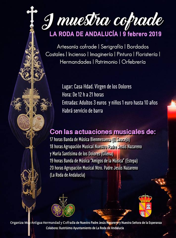 La Hermandad de Jesús Nazareno y Nuestra Señora de la Esperanza de La Roda de Andalucia, en colaboración con el Ayuntamiento de la localidad organizan su primera muestra cofrade el próximo sábado 9 de febrero.