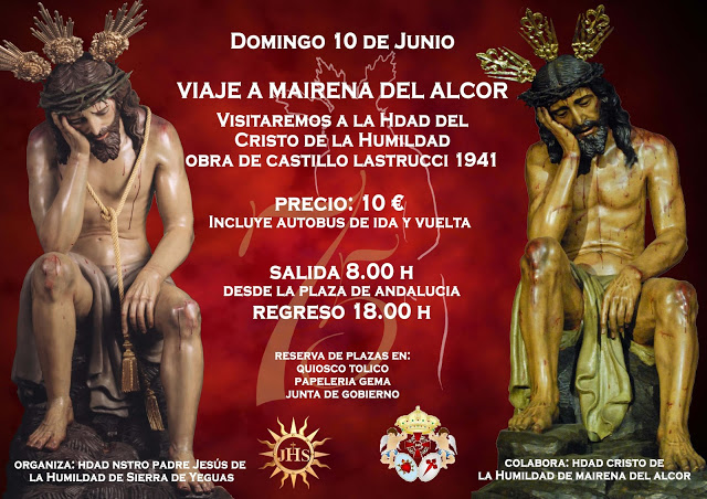 La Hermandad de Nuestro Padre Jesús de la Humildad  de Sierra de Yeguas, dentro de los actos conmemorativos del 75 Aniversario de la llegada y bendición de su titular, organiza un viaje a Mairena del Alcor a visitar a la Real, Antigua y Fervorosa Hermandad Mariana y Cofradía de Nazarenos del Santísimo Cristo de la Humildad, Nuestra Señora de los Dolores, Dulce Nombre de María y Santiago Apóstol .
