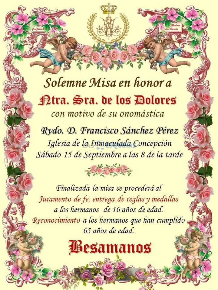 Finalizada la misa, se procederá al juramento de fe, entrega de reglas y medallas a los hermanos de 16 años de edad, así como habrá reconocimiento a los hermanos que han cumplido los 65 años de edad.