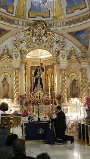 reclinatorio situado delante del camarín de “Padre Jesús”, y con la mano