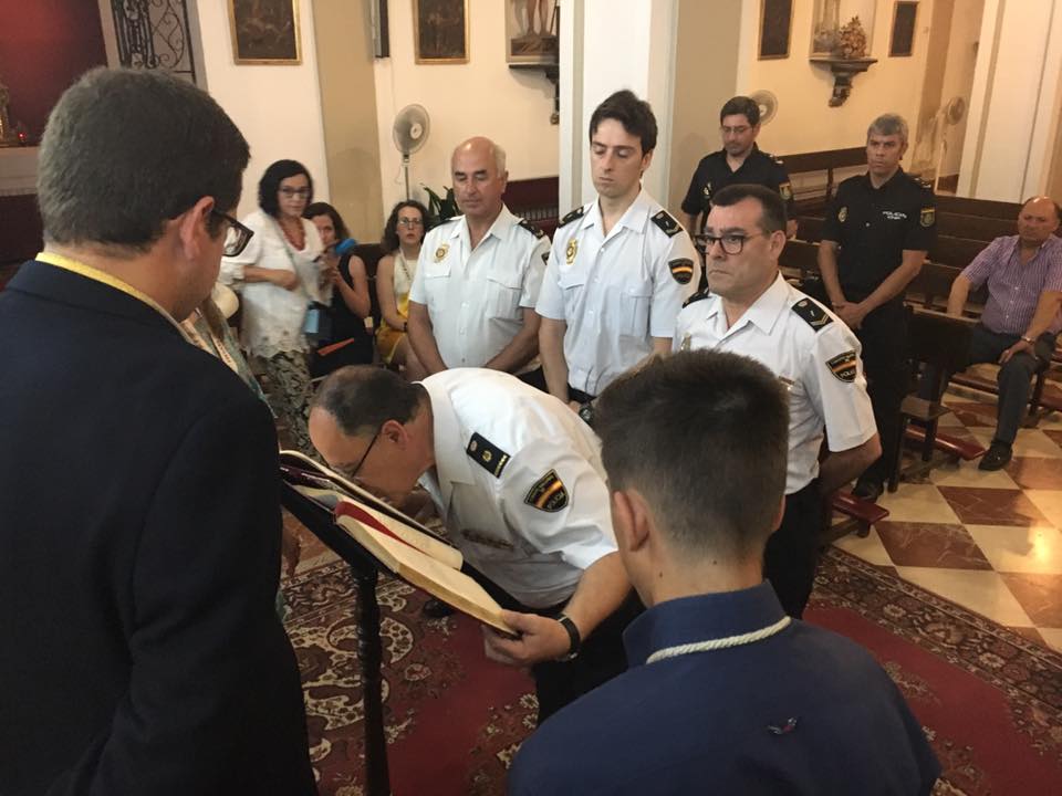 Tras la comunión, se procedió a lectura del acta del nombramiento al Cuerpo Nacional de Policía como hermano Honorario, les fue impuesta la medalla de la Hermandad al Inspector Jefe, D. José Cano Ariza, y demás agentes del cuerpo allí presentes y les fue entregado un cuadro como recuerdo de dicho acto.