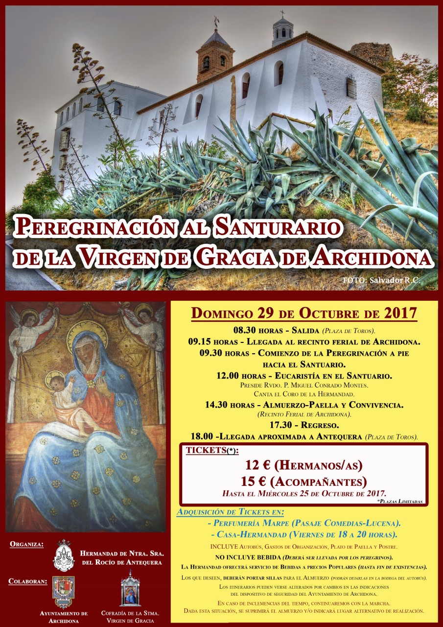 La Hermandad de Ntra. Sra. del Rocío de Antequera organiza una peregrinación al Santuario de la Virgen de Gracia, Patrona de Archidona, el próximo DOMINGO 29 DE OCTUBRE DE 2017.