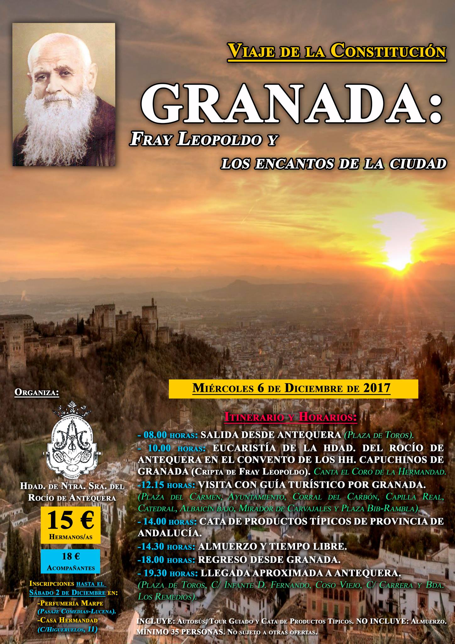 La Hermandad de Nuestra Señora del Rocío de Antequera organiza una visita a la ciudad de Granada para el próximo día de la Constitución.