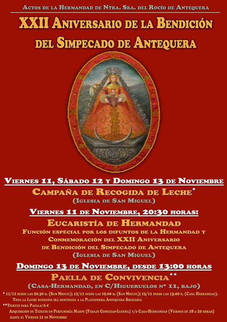 la Hermandad del Rocío de Antequera celebra el veintidós Aniversario de Bendición de su Simpecado.