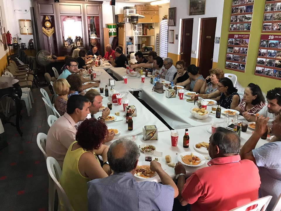 Un total de treinta hermanos se citaron en esta jornada para finalizar el curso en la Casa de Hermandad, en la que honraron a sus Hermanos Honorarios con un almuerzo de Porra Antequera, en un año en el que se cumple el segundo aniversario de dicho nombramiento.