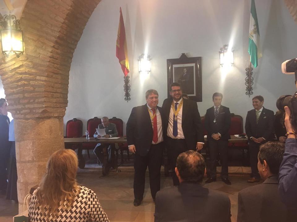 El Hermano Mayor Emilio Córdoba agradece a la Hermandad del Rocío de Ronda y en especial a su Hermano Mayor, Antonio Martín, la invitación a participar en estos actos al igual que les traslada públicamente su felicitación por dicho aniversario.