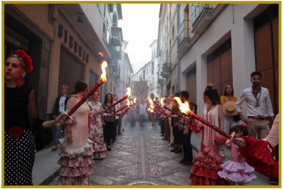 Se ruega a todos los vecinos cuyos domicilios estén ubicados en las calles de dicho recorrido, tengan a bien adornar sus balcones con colchas y/o mantones para el paso de nuestra Hermandad. También quedan todos invitados a participar en el recorrido ataviados de traje flamenco.