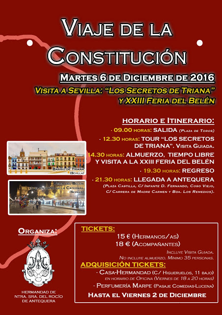 ya es tradicional, el próximo 6 de Diciembre la Hermandad organiza un viaje a