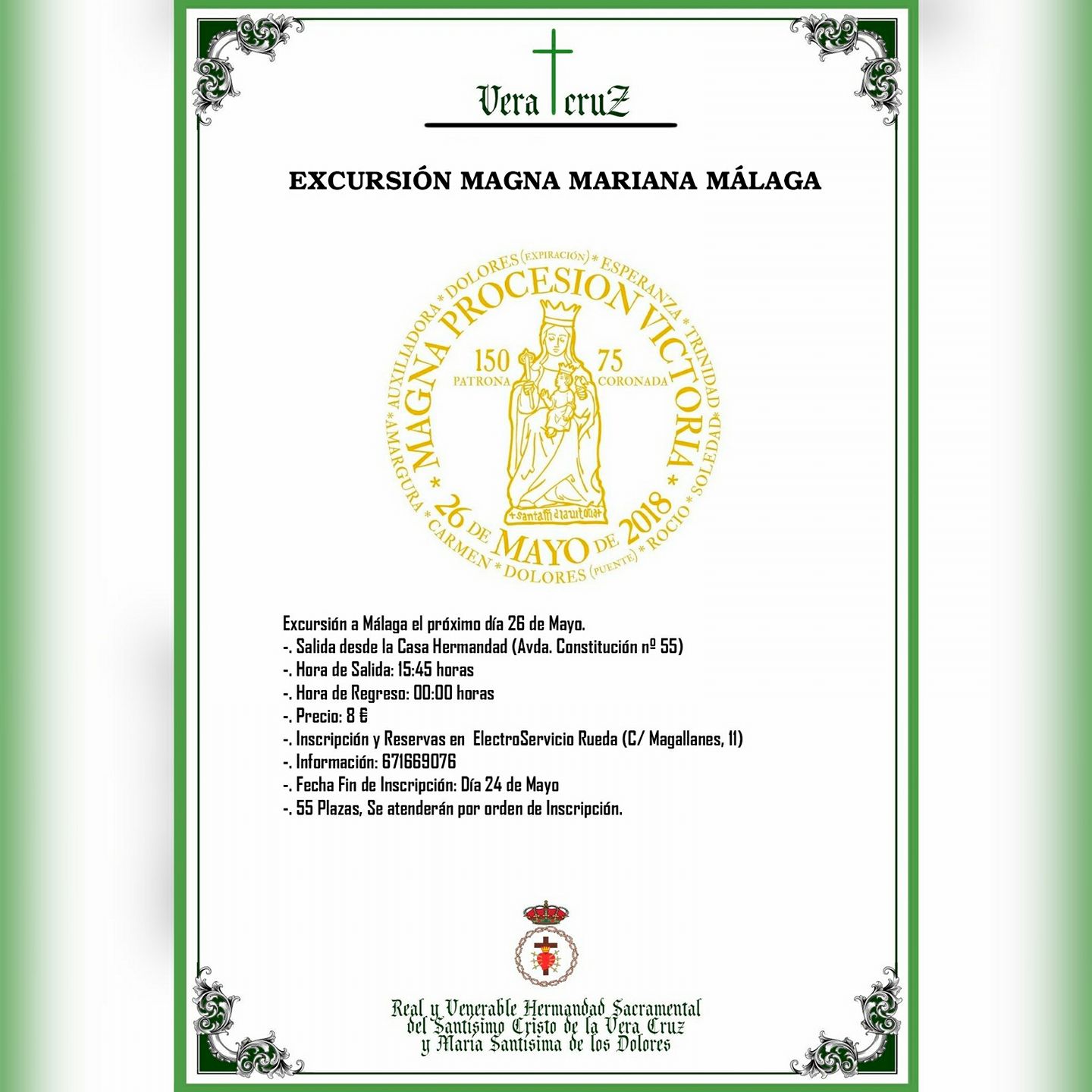 La Hermandad del Santísimo Cristo de la Veracruz y María Santísima de los Dolores organiza excursión a la Magna Mariana de Málaga.