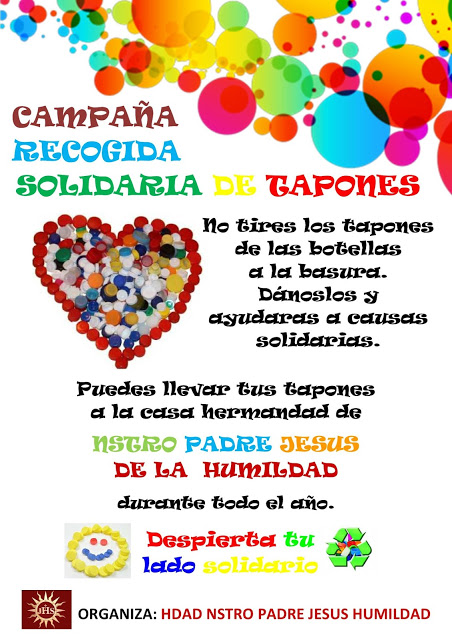 La campaña consiste en la recogida de tapones para aportarlos a diferentes proyectos de personas necesitadas.