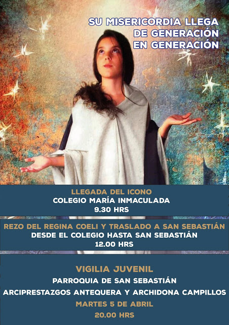 El día 8 de Abril el icono estará en Málaga capital. Por la mañana los jóvenes del colegio Academia Santa Teresa llevarán el icono al Complejo Asistencial de las Hermanas Hospitalarias y por la tarde, a las 20:30 h se realizará el Adoremus en el Seminario Diocesano.