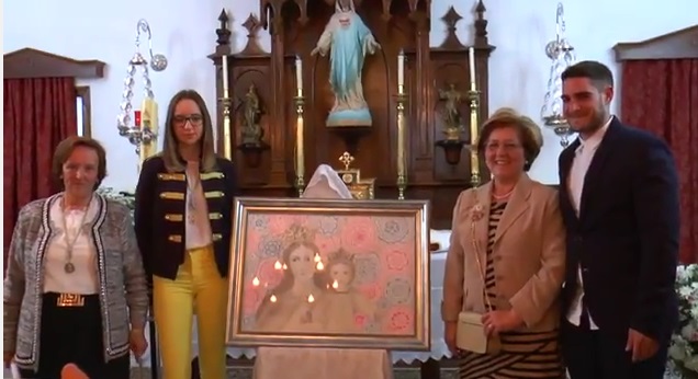 La joven Macarena Muñoz pinta a María Auxiliadora de Cartaojal en el cartel de su Romería