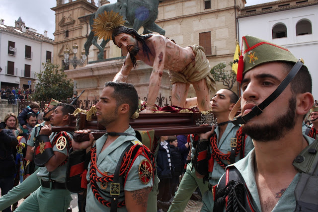 Antequera ha iniciado su Miércoles Santo con el tradicional traslado del Cristo del Mayor Dolor por parte del Tercio Gran Capitán Primero de la Legión de Melilla. La imagen ha salido de la iglesia de San Sebastián de la localidad, después de escuchar las saetas de los devotos, para procesionar de manera breve por varias calles de la zona, enmarcada en el centro histórico.