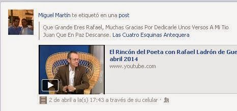 Miguel Martín dejaba el siguiente comentario sobre nuestra sección de El rincón del poeta de Rafael Ladron de Guevara: “Que grande eres Rafael, muchas gracias por dedicarle unos versos a mi tío Juan, que en paz descanse”.