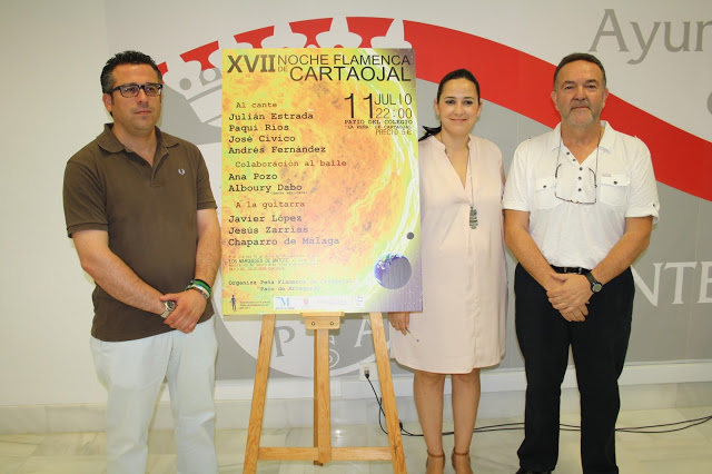 En la velada, participarán al cante Julián Estrada, de Puente Genil, con larga trayectoria y ganador de numerosos primeros premios y galardones; Paqui Ríos, malagueña del barrio de la Victoria y considerada una de las mejores cantaoras del momento; José Cívico, cantaor local de Cartaojal y que ya ha participado varias veces en el festival; y Andrés Fernández, de Huelva y ganador este año del premio a los jóvenes flamencos en el Concurso Juan Casillas.