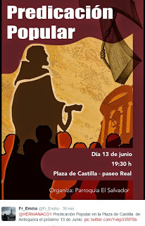 Como los pastores en el desierto, como los primeros discipulos o el propio Jesús, los miembros de la Parroquia del Salvador y Fray Emilio, Religioso Capuchino, organizan Predicación Popular en la Plaza de Castilla y Paseo Real de Antequera. Se trata de una actividad que devuelve el espiritu callejero y de dar a conocer las Enseñanzas Cristianas a la gente a pie de calle y tendrá lugar el próximo sábado 13 de Junio a las 19.30 horas.
