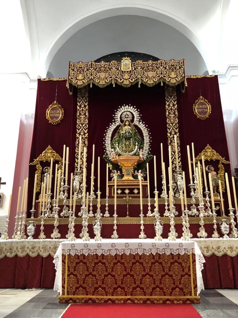 La Santísima Virgen de los Remedios Coronada -Patrona y Alcaldesa perpetua de la ciudad de Vélez-Málaga – ya se encuentra presidiendo su altar de novena en la Parroquia de San Juan Bautista.