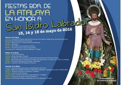 Los días 13, 14 y 15 de mayo la barriada de La Atalaya celebra sus fiestas en honor a San Isidro Labrador. Os dejamos por aquí toda la programación prevista para que podáis disfrutar de todas las actividades.