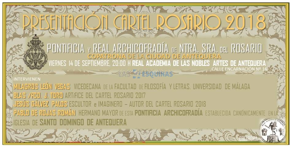 La Pontificia y Real Archicofradía de Nuestra Señora del Rosario, Copatrona de Antequera, organiza acto de presentación de su cartel 2018.