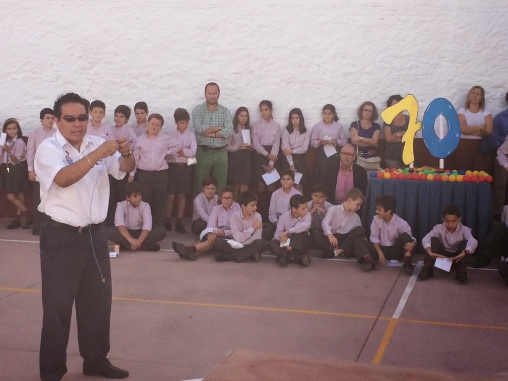 Con motivo de estas siete décadas de labor educativa, a las once de la mañana se celebró un acto conmemorativo en el colegio donde participaron alumnado y profesorado así como representantes de padres y madres del colegio. El acto, que fue dirigido por Simeón Martín Reiner en calidad de Director del centro escolar, tuvo como ejes centrales el canto del himno de La Salle, la suelta de globos azules y amarillos –colores identificativos de la institución- y una exhibición de trombo acrobático por parte del actual campeón del mundo en esta modalidad, Óscar Cruz.