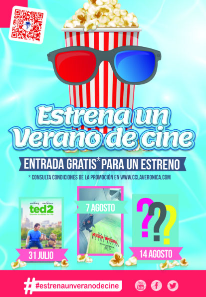 El Centro Comercial La Verónica ha lanzado aprovechando la época estival la campaña ‘Estrena un verano de cine’, con el fin de que todos sus clientes y seguidores disfruten de un refrescante estreno de cine “por la cara” cada viernes en torno a las diez y media de la noche.