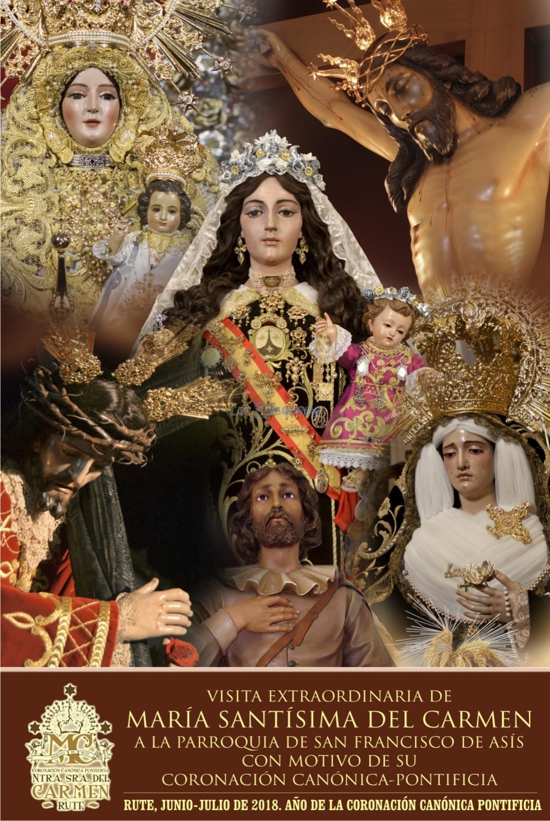 El próximo fin de semana -del 29 de junio al 01 de julio-, Nuestra Señora del Carmen, Patrona de Rute, visitará la parroquia de San Francisco de Asís, sede canónica de la Real cofradía de María Santísima de la Cabeza coronada, de la cofradía del Santísimo Cristo de la Misericordia y de la Seráfica hermandad y cofradía de nazarenos de Nuestro Padre Jesús de la Rosa y María Santísima del Mayor Dolor.
