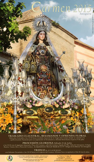 Nuestra Señora del Carmen saldrá en procesión por las calles de su feligresía y por motivo de las obras en Calle Rio coincidirá que en su recorrido visite los templos de devoción carmelita en Antequera en este Año Jubilar de Santa Teresa de Jesús.