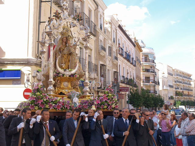 La Virgen del Rosario de Antequera ha salido en procesión en la mañana del domingo acompañada por multitud de antequeranos que han acompañado a la Virgen de Santo Domingo en su tradicional recorrido. La procesión salió a las 12 de la mañana desde la Basílica de la Cofradía Hermana de la Paz para transcurrir por Pasillas, Peñuelas, Carreteros y llegar al centro para enfilar calle Infante Don Fernando, plaza de San Sebastián, cuesta de la Paz y llegar a su templo pasadas las 2 y media de la tarde.