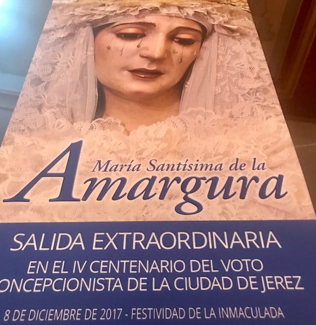 La Virgen de la Amargura de Jerez de la Frontera presidirá el primer templo jerezano los días 5, 6 y 7 de diciembre sobre su paso de palio, a las 20.00 horas, con rezo del Santo Rosario y a continuación, cada día a las 20.30 horas Santa Misa para clausurar el Cuarto Centenario del Voto Concepcionista de Jerez de la Frontera.