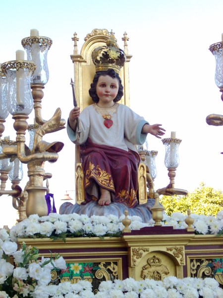 10.45 Salida procesional de la imagen de Cristo Rey desde la Real Parroquia de Señora Santa Ana, en la Plazuela de Santa Ana. El recorrido será el siguiente: Pelay Correa, Troya, Pureza, Luis de Cuadra, Betis, Duarte, Pureza, Altozano, San Joge, Antillano Campos, Alfarería, Rodrigo de Triana, Cristo de las Tres Caidas y Pelay Correa. El acompañamiento musical correrá a cargo de la banda de Cornetas y Tambores Juvenil «Stmo. Cristo de las Tres Caídas» abriendo paso y la Banda de Cornetas y Tambores «San Juan Evangelista», tras el paso procesional. Entrada prevista a las 14.30 horas.