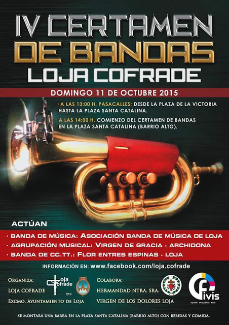 El municipio granadino de Loja vivirá el próximo domingo 11 de Octubre el Cuarto Certamen de Bandas Loja Cofrade, que comenzará a las una de la tarde con un pasacalles desde la Plaza de la Victoria hasta la Plaza de Santa Cataina, en el Barrio Alto donde dará comienzo el Certamen a las dos de la tarde.