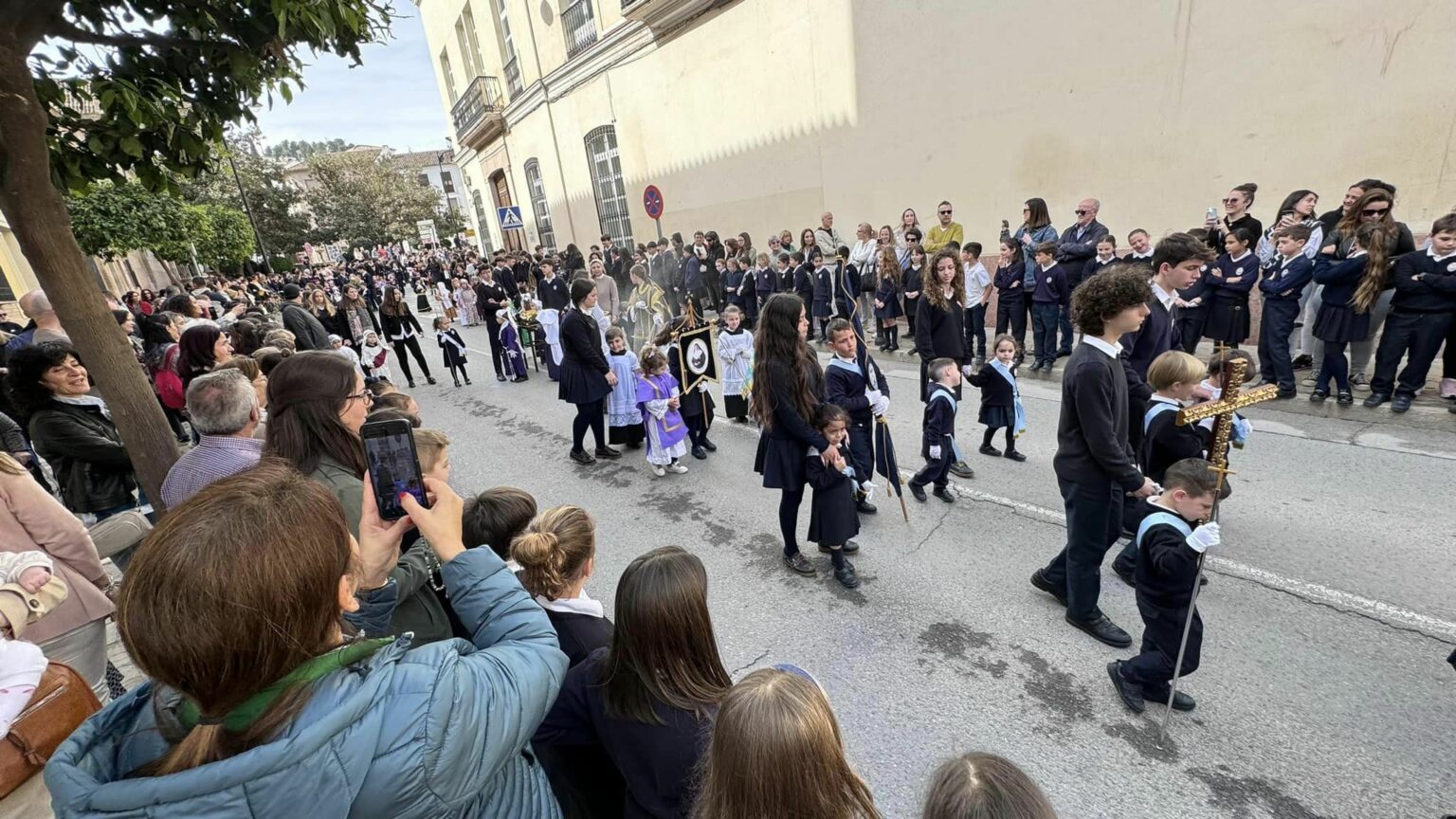 Los alumnos más pequeños del Colegio Nuestra Señora de la Victoria de Antequera han celebrado durante la mañana de hoy una procesión de tronos chicos.