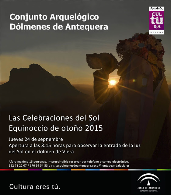 En unos días Antequera tiene una nueva cita con el Sol. El día 24 de septiembre el Conjunto Arqueológico Dólmenes de Antequera abre sus puertas, excepcionalmente a las 08:15 horas, para poder presenciar los fenómenos lumínicos que se producen con motivo del equinoccio de otoño en el dolmen de Viera.