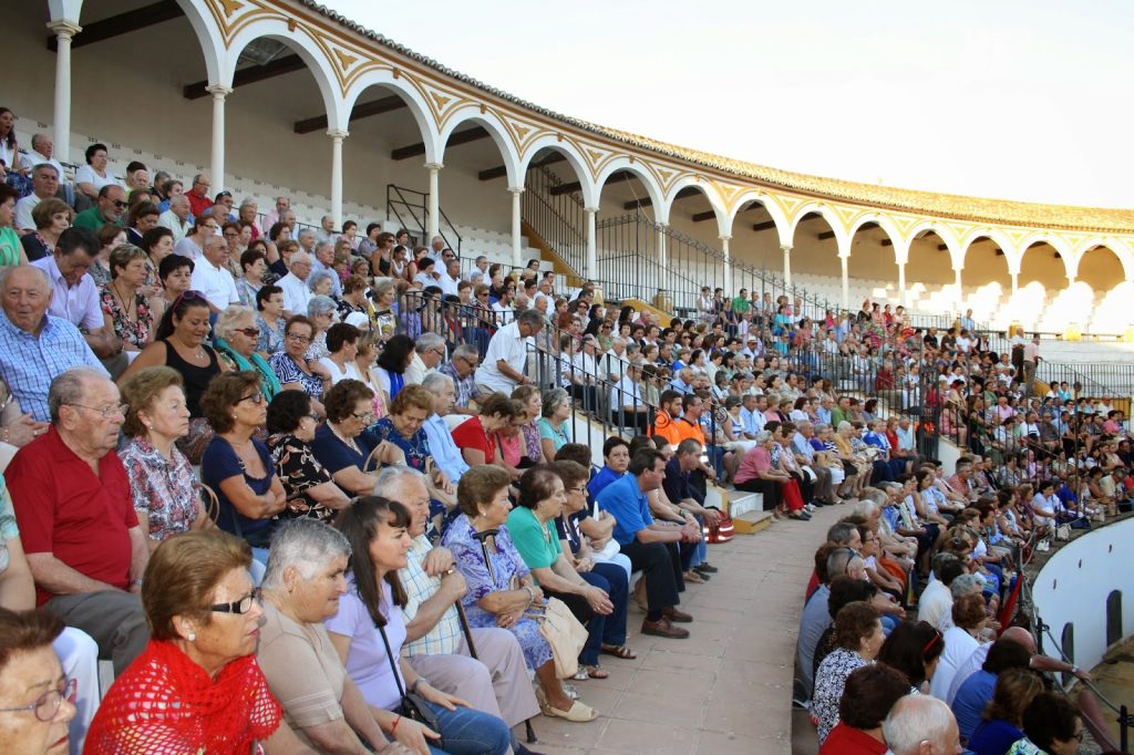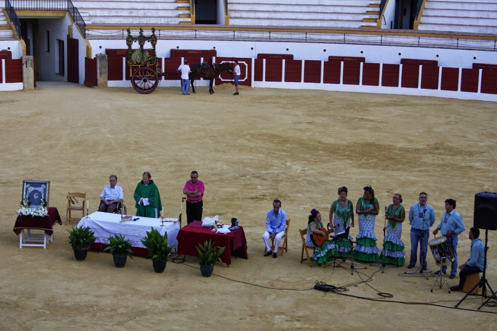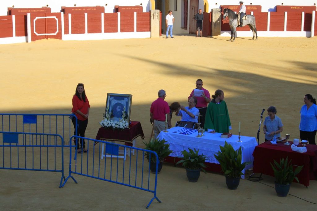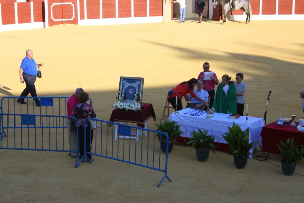Más de un centenar de feligreses y devotos del Señor de la Verónica, tanto de Antequera como de otros municipios cercanos, se han reunido en la mañana de hoy en la tradicional misa rociera celebrada en la Plaza de Toros y que, año tras año sirve de preámbulo para la posterior romería del Señor.